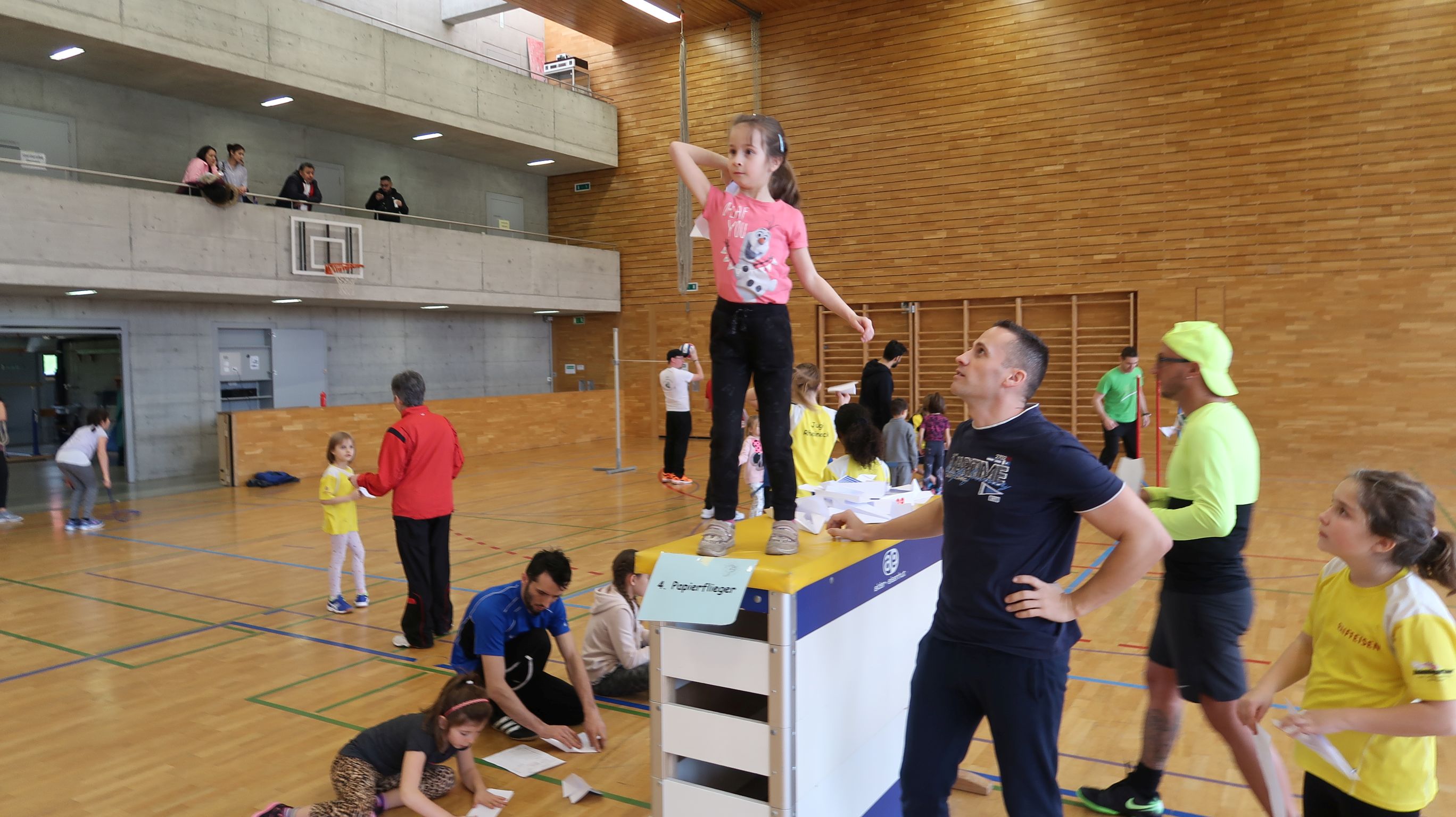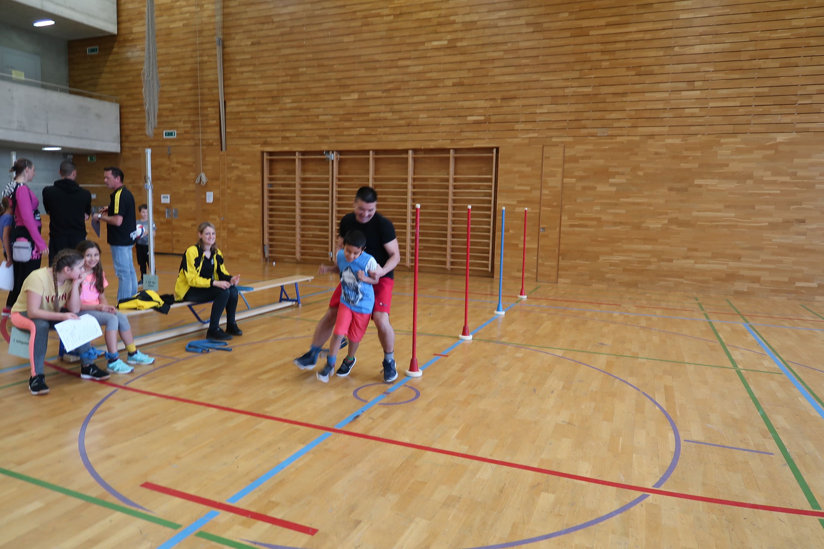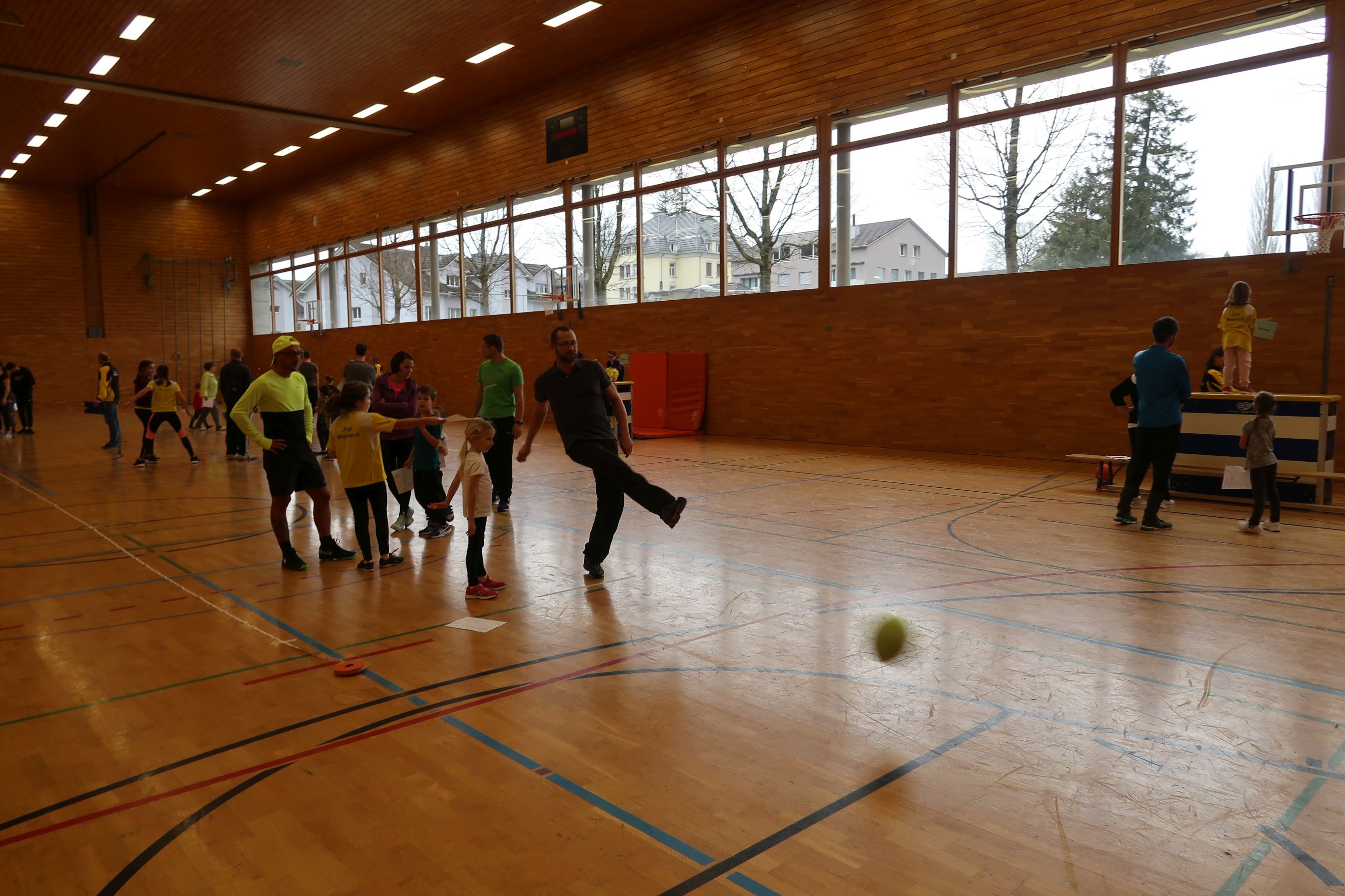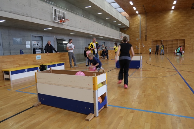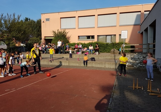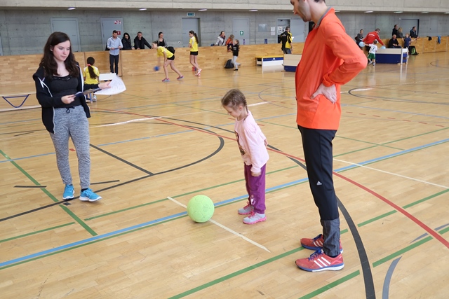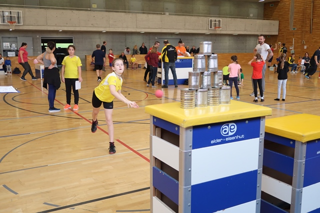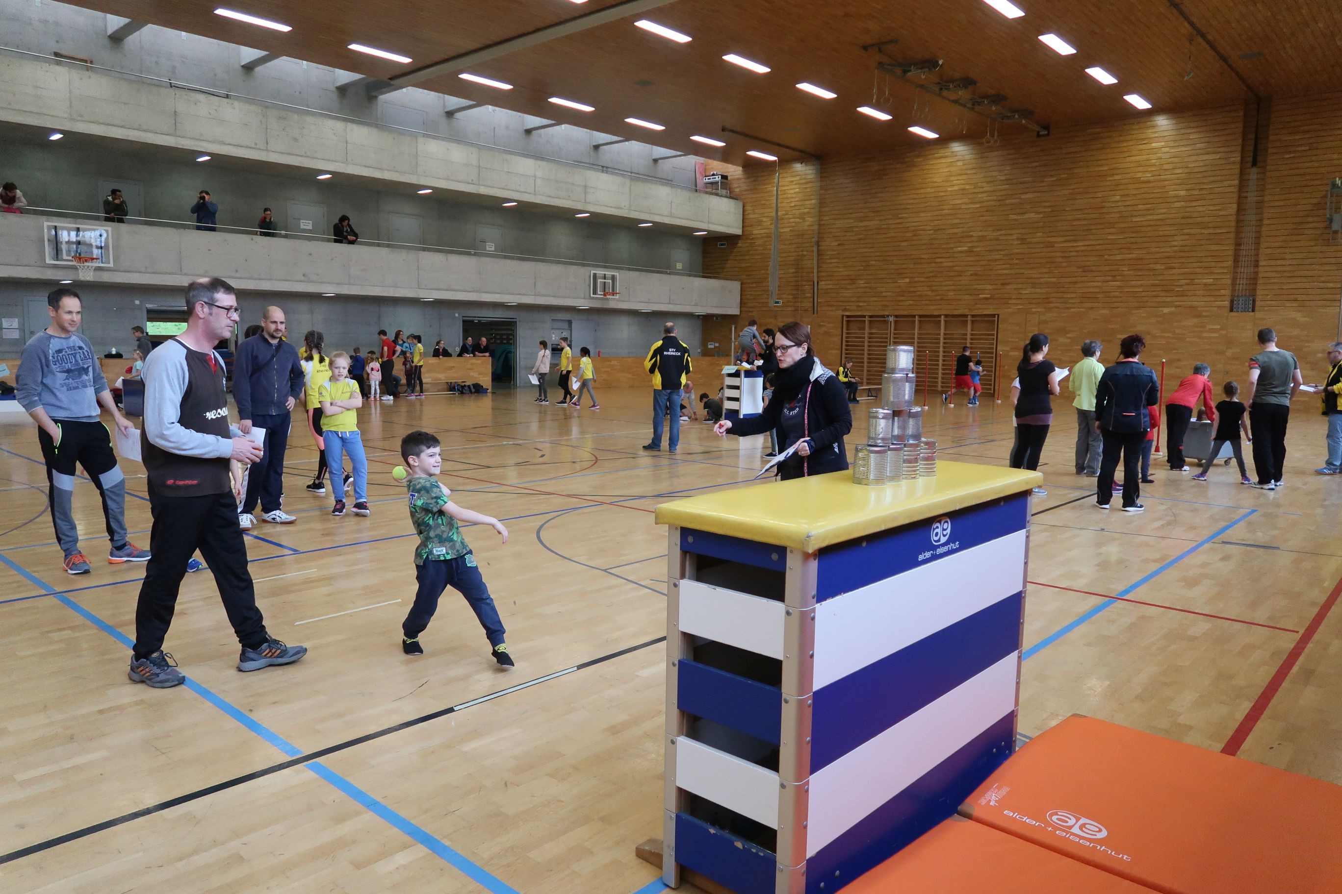 Den ganzen Nachmittag übten sich die Zweiergruppen in Seilspringen, Korbwerfen, Papierflieger, Kegeln, Büchsenschiessen, Zwillingsslalom, Wagenrennen und Torschiessen. Nicht selten waren es die Kinder, die mit einem besseren Ergebnis als der Elternteil aufwarten konnten. Was am Schluss zählte, war aber das Gesamtresultat. Aufgeteilt wurden die Teams in drei Kategorien.
