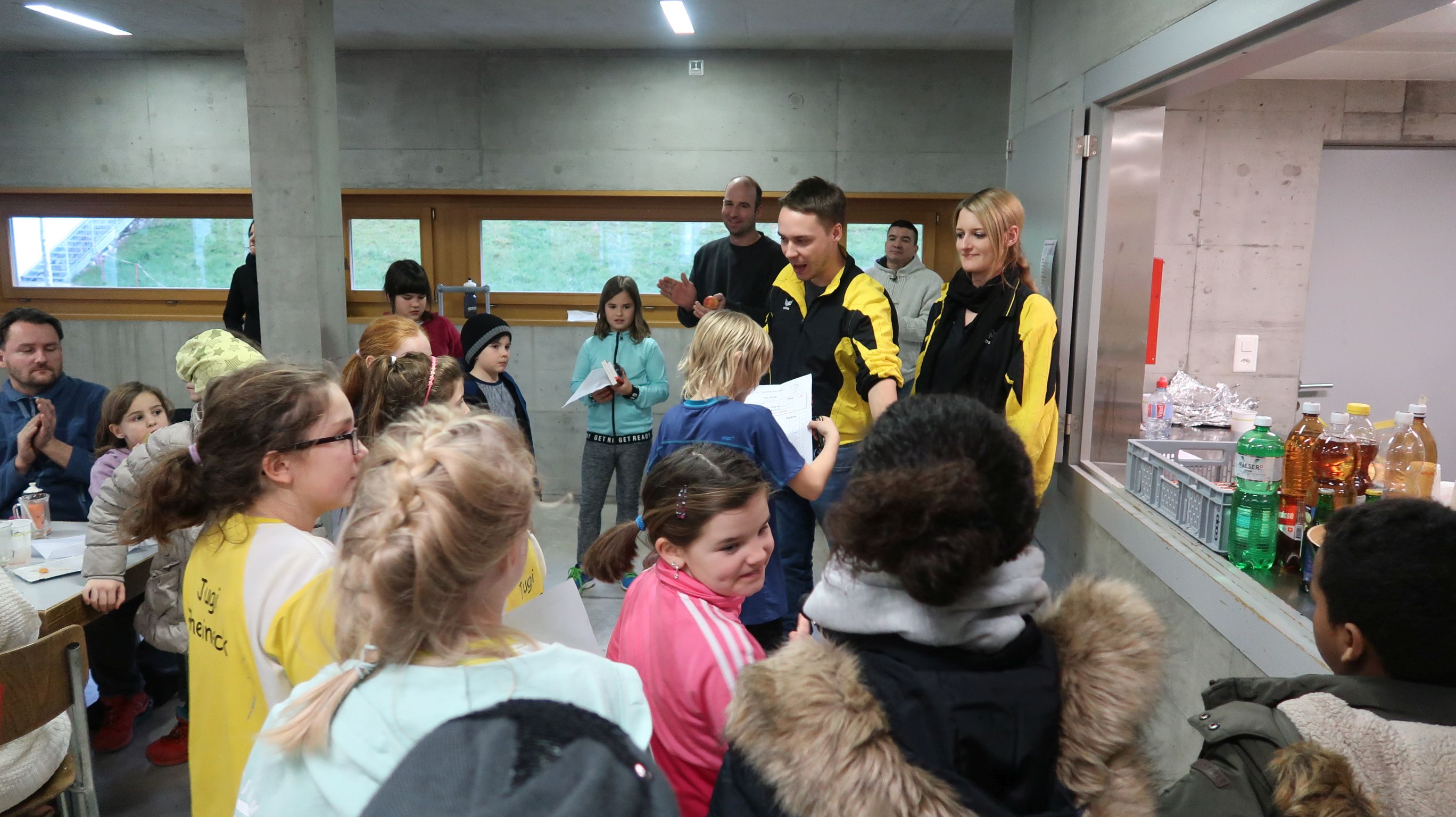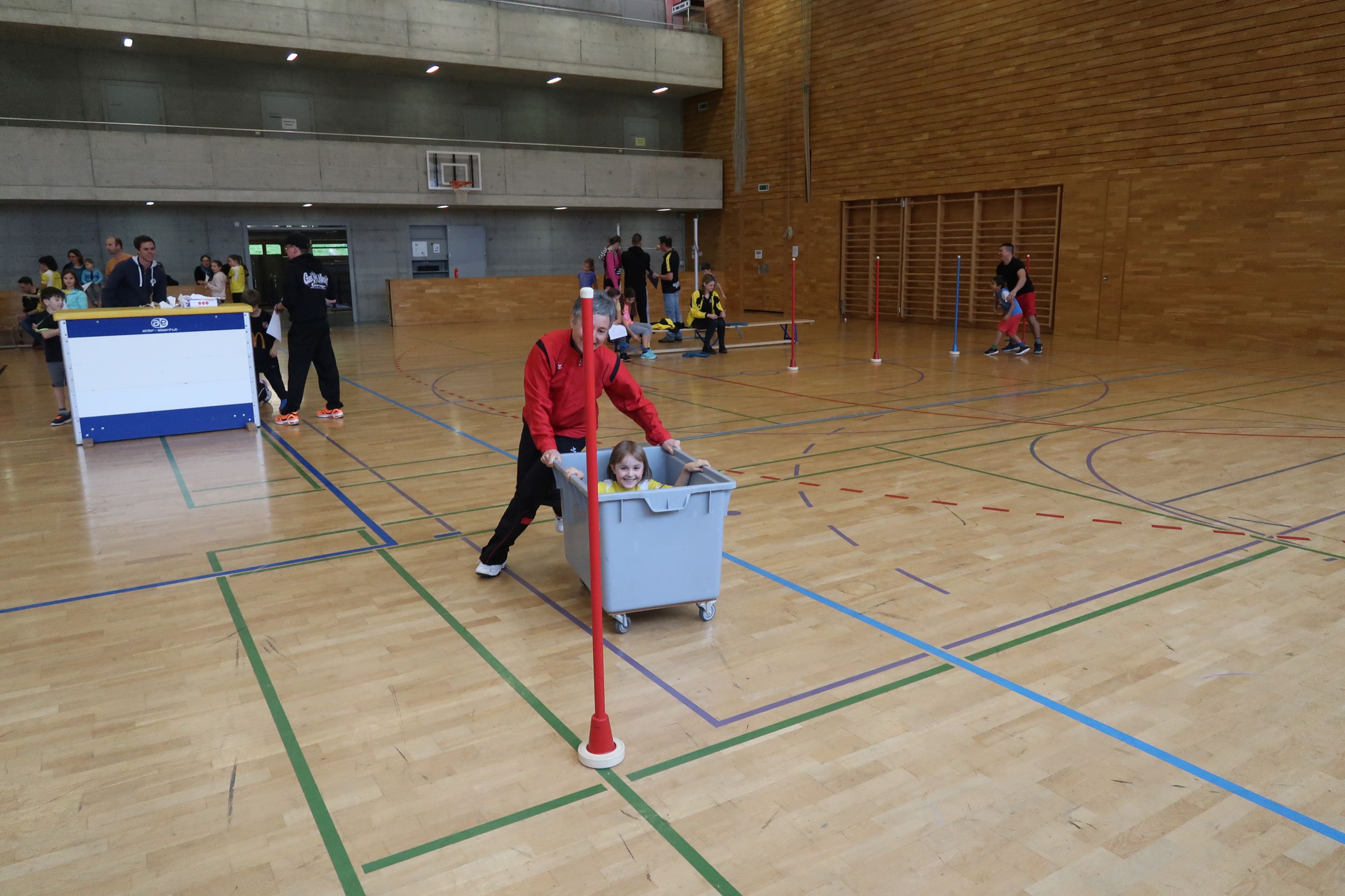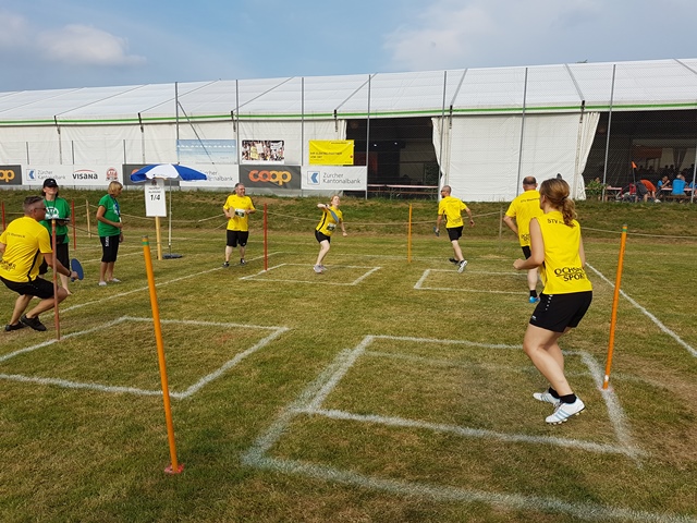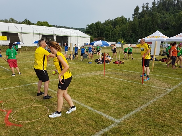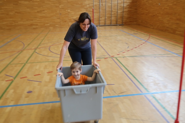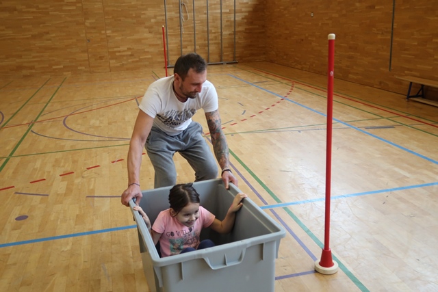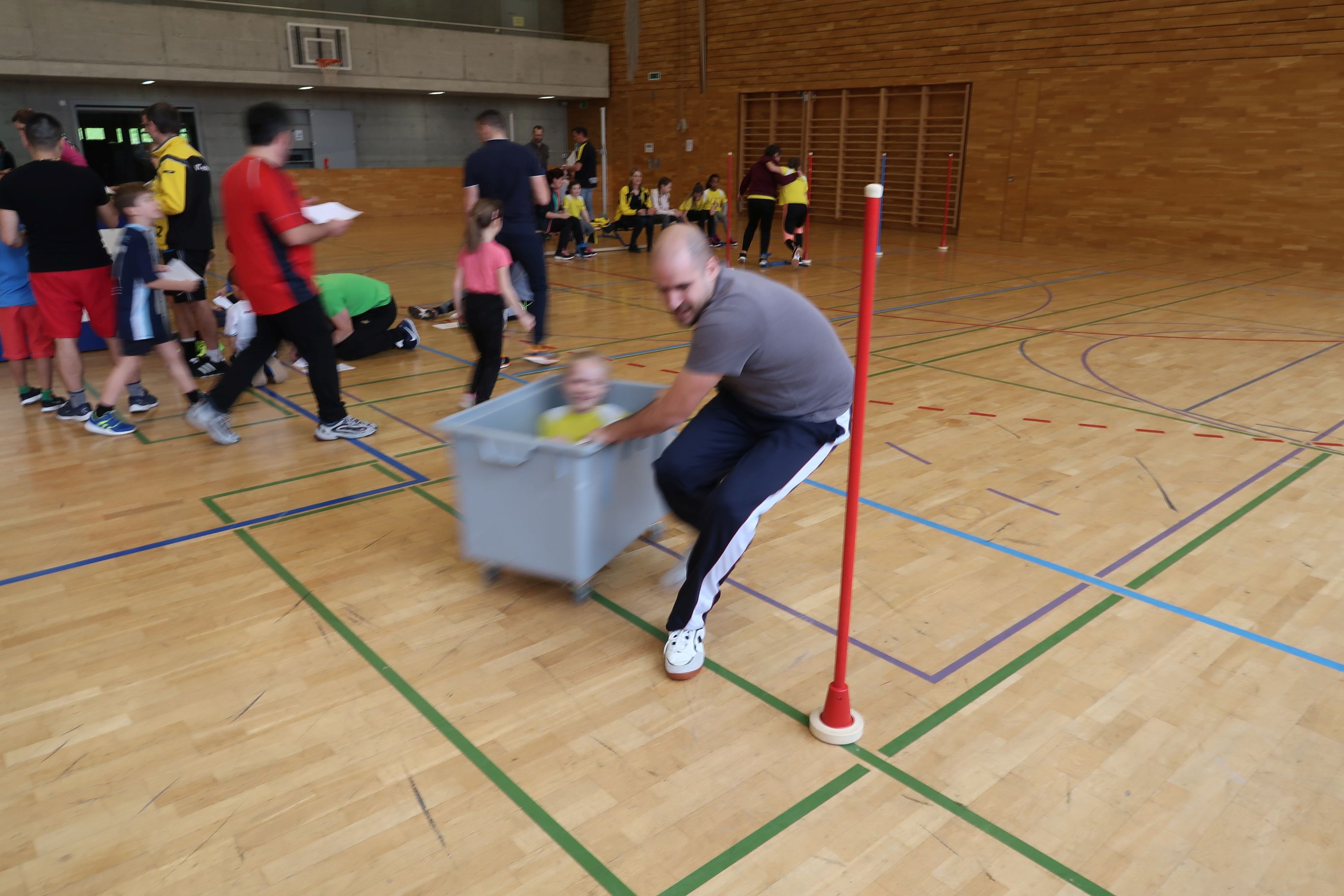 Den ganzen Nachmittag übten sich die Zweiergruppen in Seilspringen, Korbwerfen, Papierflieger, Kegeln, Büchsenschiessen, Zwillingsslalom, Wagenrennen und Torschiessen. Nicht selten waren es die Kinder, die mit einem besseren Ergebnis als der Elternteil aufwarten konnten. Was am Schluss zählte, war aber das Gesamtresultat. Aufgeteilt wurden die Teams in drei Kategorien.