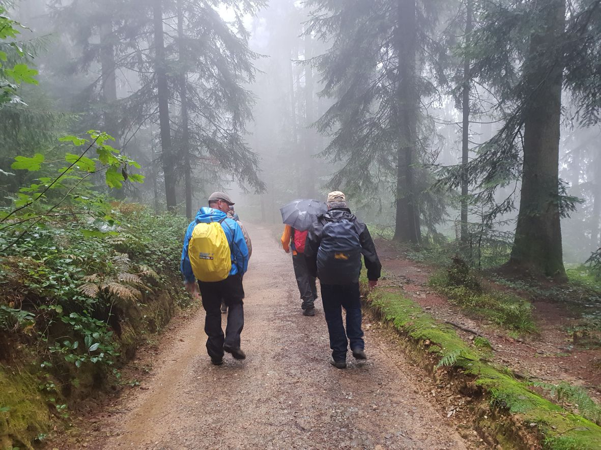 Bei Regen und Wind starteten wir nach dem Mittag unsere Wanderung über Möggers nach Scheidegg. Leider musste aufgrund des schlechten Wetters der Baumwipfelpfad ausgelassen werden. Dank der guten Ausrüstung kamen wir fast trocken in Scheidegg an, wo wir das Abendessen geniessen konnten.