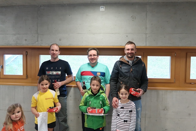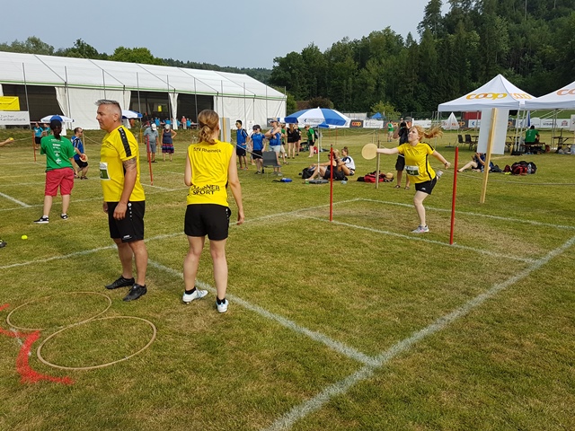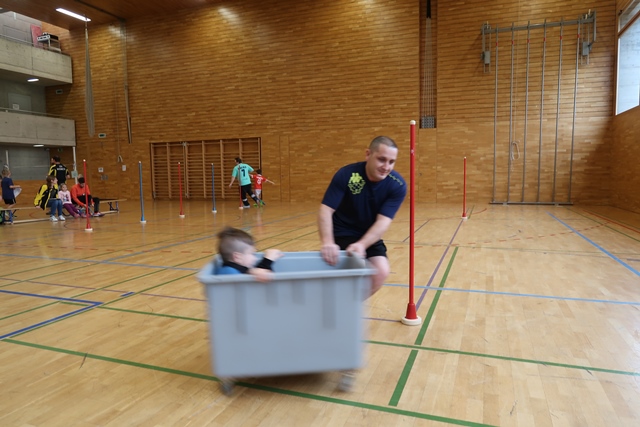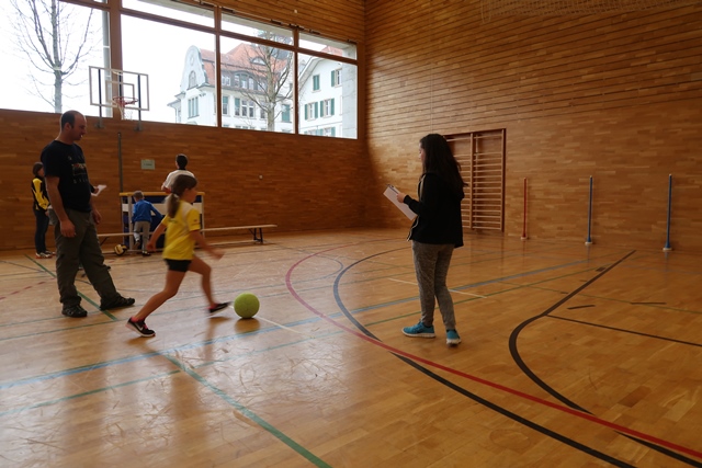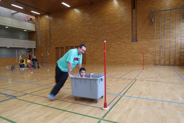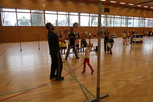 Den ganzen Nachmittag übten sich die Zweiergruppen in Seilspringen, Korbwerfen, Papierflieger, Kegeln, Büchsenschiessen, Zwillingsslalom, Wagenrennen und Torschiessen. Nicht selten waren es die Kinder, die mit einem besseren Ergebnis als der Elternteil aufwarten konnten. Was am Schluss zählte, war aber das Gesamtresultat. Aufgeteilt wurden die Teams in drei Kategorien.